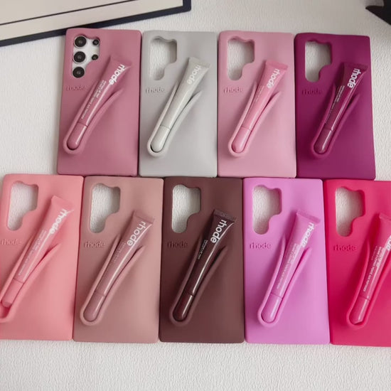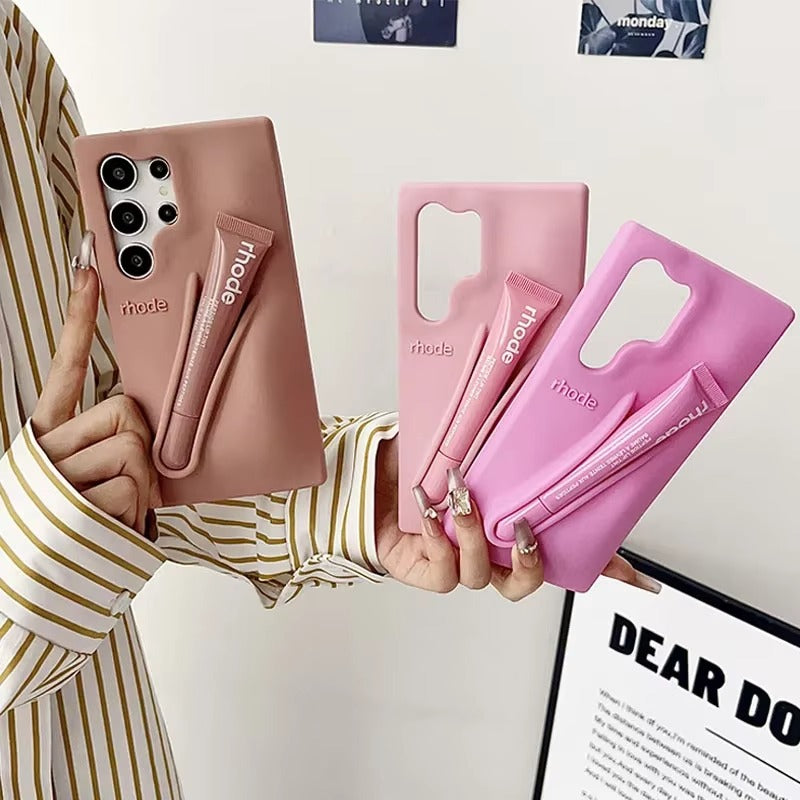Fashion Popular Lip Lipstick Holder Phone Case for Samsung Galaxy S24 S25 Ultra S23 Plus DIY Soft Silicone Bracket Cover