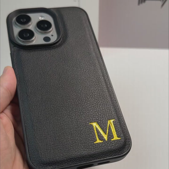 Personalized Phone Case for iPhone 11 12 13 14 15 16 Pro Max Plus Custom Name Initial 3D Hot Embossed Faux Leather Protect Cover