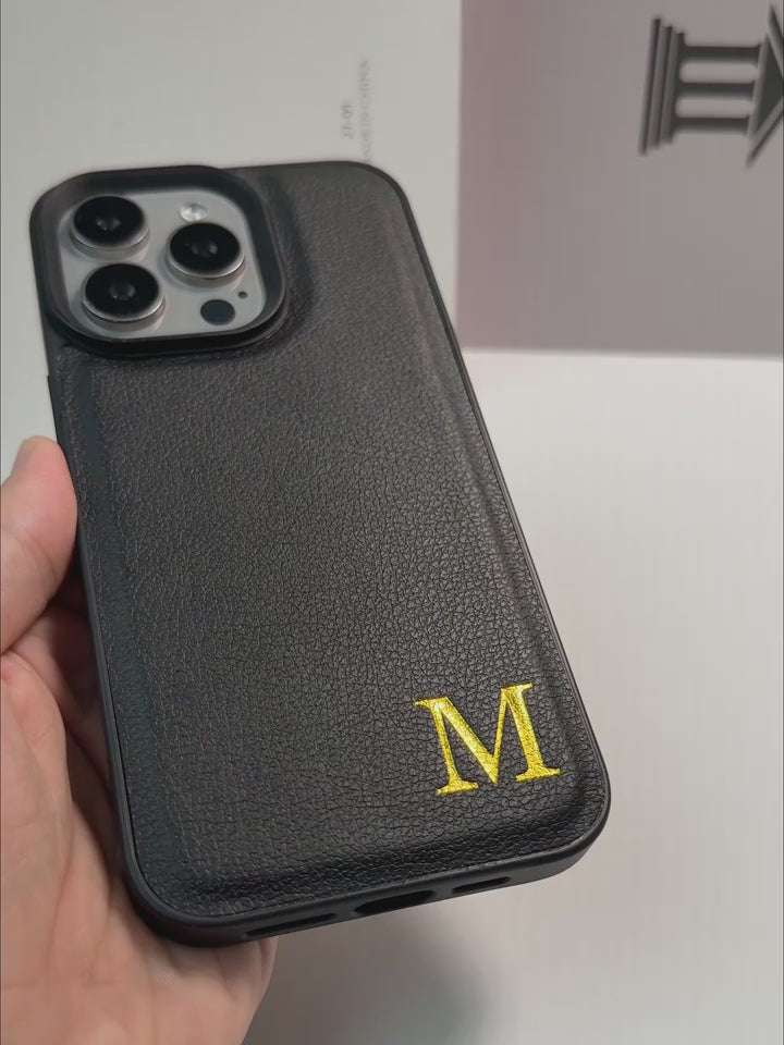 Personalized Luxury Phone Case for iPhone 11 12 13 14 15 16 Pro Max Plus Custom Name Initial Hot Embossed Faux Leather Protective Cover